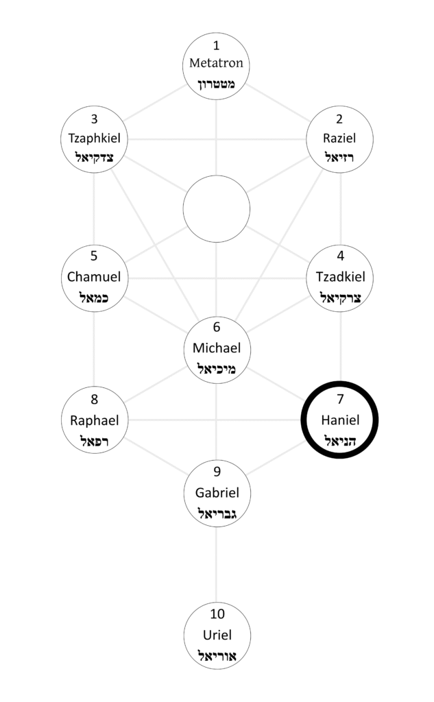 Archangel Haniel resided in the 7th Sephira, Netzach, Venus and right hip.
