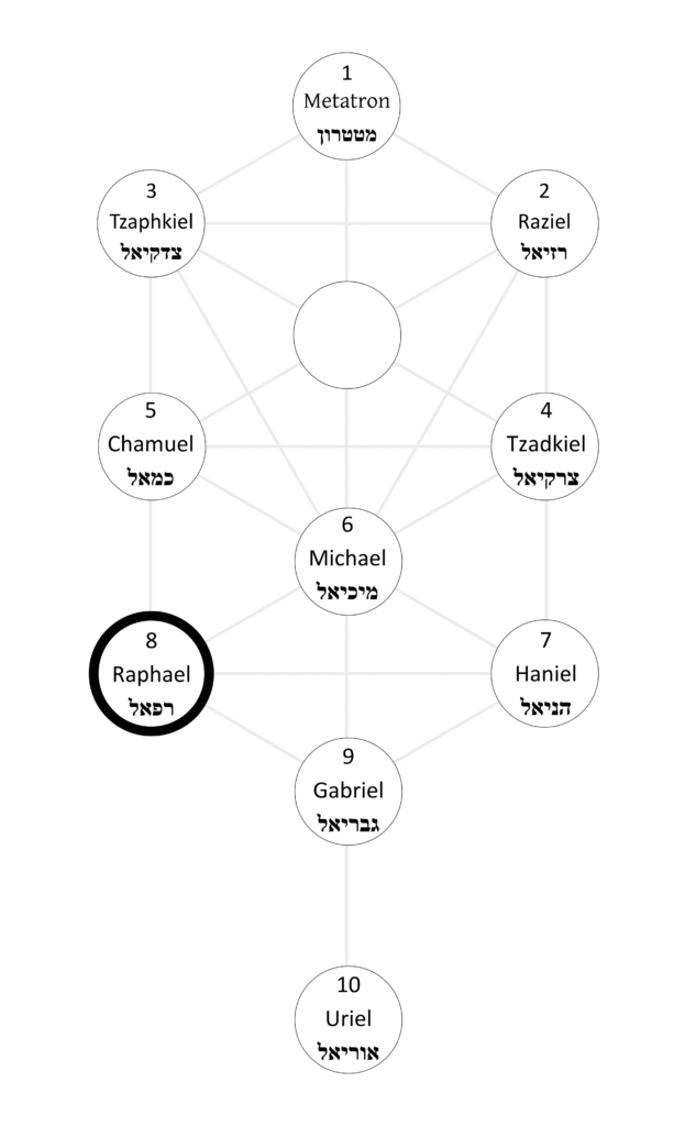 Archangel Raphael resides in the 8th Sephira, Hod. His domain is Mercury.