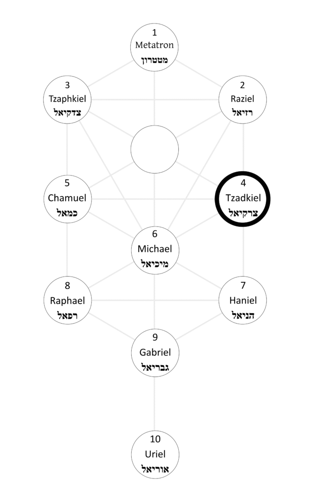 Archangel Tzadkiel resides in the 4th Sephira, Chesed.