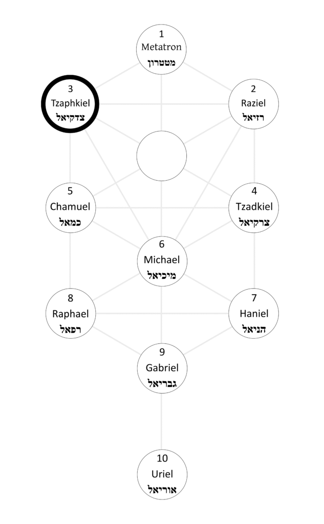 Archangel Tzaphkiel resides in the 3rd Sephira, Binah, logic.