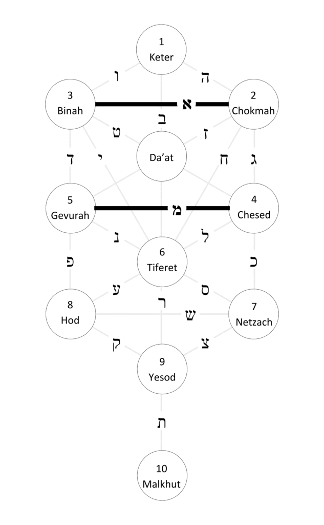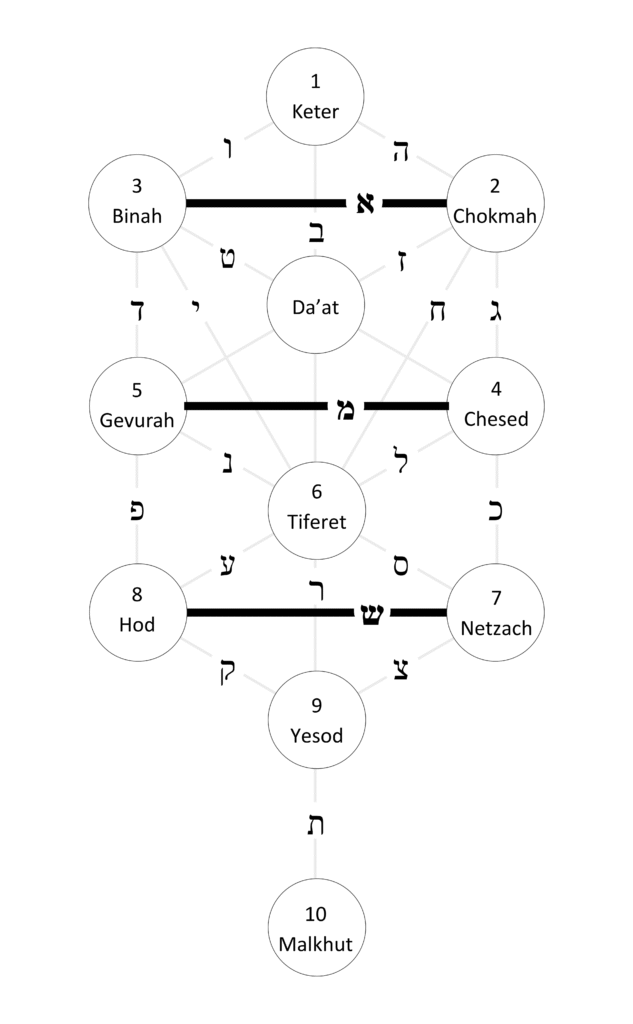 Hebrew has 3 mother letters. They connect the 3 horizontal paths in the Tree of Life.