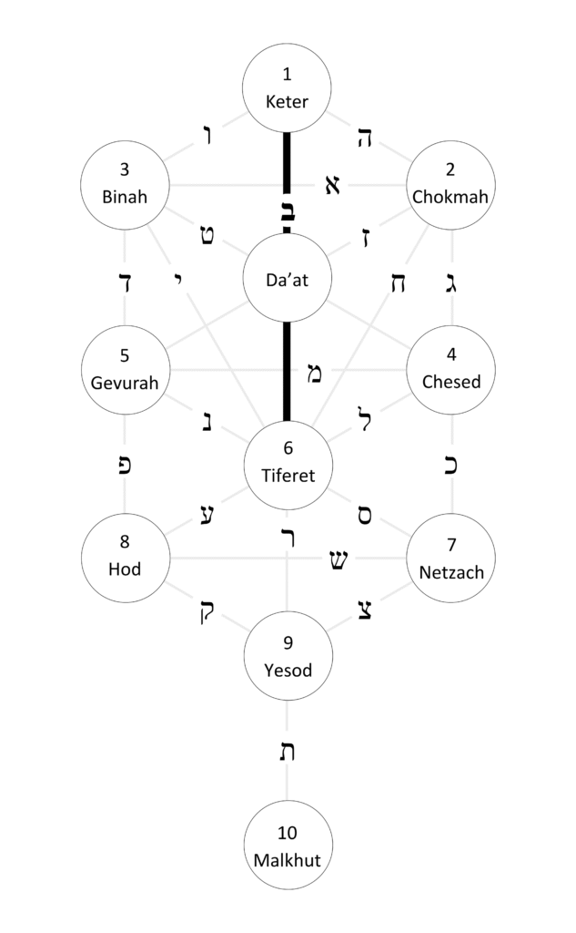 The Hebrew letter ת Tav, represents the path between our emotional beings residing in Yesod and our physical beings, residing in Malkut.
